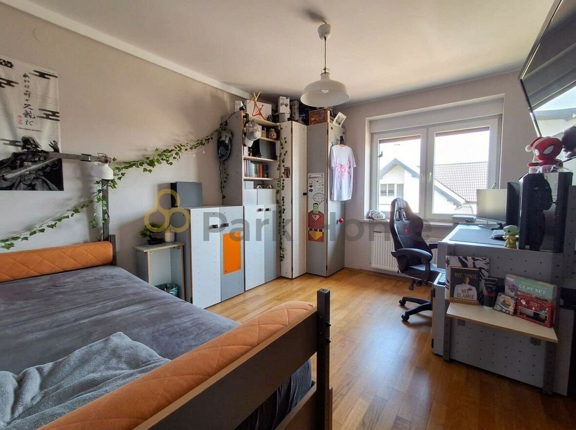 Na piętrze znajduje się również dodatkowa łazienka z prysznicem, co znacząco podnosi komfort codziennego funkcjonowania rodziny.