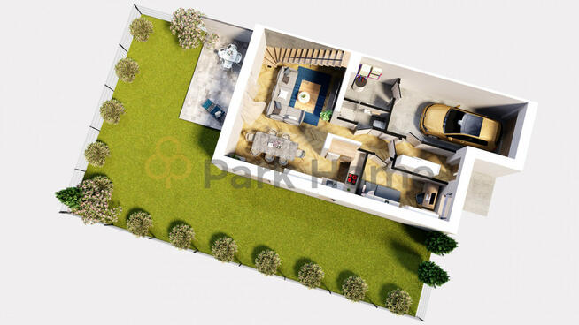 Dom parterowy, jednorodzinny z przestronnym salonem z aneksem kuchennym oraz trzema sypialniami, usytuowany na niewielkiej, ...